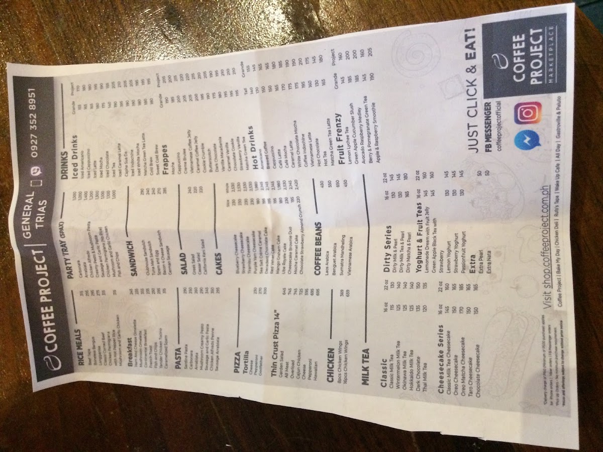 Coffee Project Vista Mall General Trias Menu